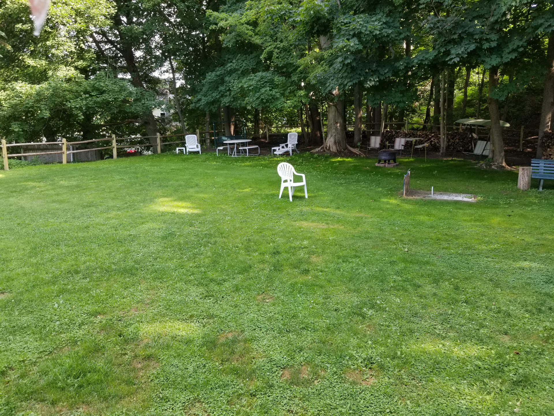 In 2020 we finished clearing the wooded area and put in a large picnic grove with tables/chairs, lounge chairs and firepits. We also seeded for grass and have stacked wood ready to burn for the firepits. Additional parking is available during barn dances on this back lawn to the barn.